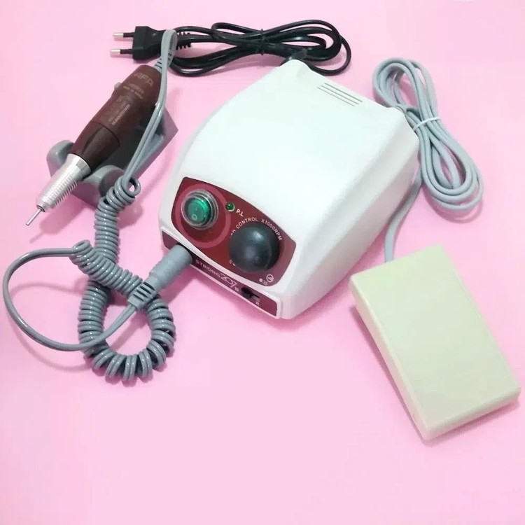 سوهان برقی 207 ساخت کمپانی نام آشنای استرانگ در کشور کره جنوبی می باشد، این دستگاه از محبوبیت بالایی نزد هنرمندان ناخن بهره میبرد. دور موتور این دستگاه 30000 دور می باشد که متاسفانه برخی از همکاران این دستگاه را به عنوان 35000 دور به فروش می رسانند. توجه داشته باشید که در هنگام انتخاب این دستگاه شما با یک دستگاه 30000 دور روبرو هستید، پس اگر برای کار خود به دستگاهی با قدرت بالا تر نیاز دارید به سراغ سایر برند ها بروید. سوم: این دستگاه دارای دو نوع دسته آرایشی سبک و لابراتواری می باشد.در استفاده از سوهان برقی، به دلیل سرعت و قدرت فوق العاده آن باید نهایت دقت و آرامش را به خرج داد تا نتیجه کار تا حد ممکن ایده آل و بی خطر از آب درآید.در جلوی دستگاه استرانگ 207 دیمر دستگاه و سوکت هندپیس دستگاه را مشاهده می نماییم، همچنین دکمه پاور دستگاه که وظیفه روشن و خاموش کردن دستگاه را به عهده دارد، در استرانگ 207 هنگامی که دستگاه در حالت خاموش باشد پدال پایی آن فعال می شود و دیگر اثری از دکمه مجزا برای پدال دیده نمی شود. دکمه تغییر جهت گردش هندپیس از راست گرد به چپ گرد را نیز مشاهده می نماییم. دیمر نیز برای کنترل سرعت چرخش دستگاه از 0 تا 35000 دور استفاده می شود. پدال پایی که در دستگاه های سوهان برقی استرانگ 207 مشاهده می شود پدالی با ابعاد کوچک و مناسب و کیفیت ساخت مطلوب می باشد. پدال این دستگاه تنها قابلیت قطع و وصل دستگاه را داشته و دور موتور توسط دیمر تنظیم می گردد. در کار های آرایشی نظیر کاشت ناخن استفاده از پدال پایی متداول نبوده و معمولا هنرمندان رشته کاشت ناخن تنها از دیمر دستی دستگاه استفاده می نمایند.